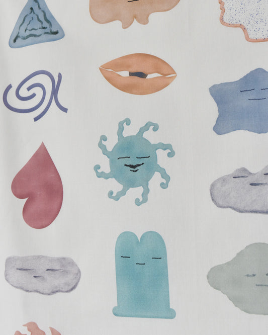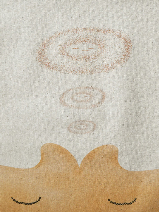壁に飾ったり、ソファにかけたり。暮らしの中で楽しむファブリック 日々の暮らしに、ちょっとした彩りがあるだけで気持ちがふっと明るくなりますよね。新発売のBreathing Deep in the Forest B1 fabric posterは、大判サイズで存在感がありながらも、やわらかな色合いで空間にすっと馴染んでくれます。 壁に飾れば、お部屋全体がほどよく明るくなり、ソファにかけるだけでも印象ががらりと変わります。 ひっかけ糸などがないシンプルな仕立てなので、スカーフのようにファッションの一部として身につけるのもおすすめです。 壁に穴をあけずに飾るには? 「壁に穴をあけたくない…」という方にもおすすめの飾り方をご紹介します。賃貸のお部屋や、傷をつけたくない壁にも◎ 〈手順〉 飾りたい場所にマスキングテープを貼ります。 その上に、メカニカルファスナー(マジックテープのようなもの)のフック面またはループ面を貼ります。 ファブリックの上部に、2とは逆の面のメカニカルファスナーを貼ります。 ファスナー同士をくっつけて、壁に固定すれば完成! 完成イメージは、こんな感じです。 ※ 壁の材質や状態によってはうまく接着しない場合もございます。またマスキングテープの痕がつく場合もございますので、目立たない場所で一度お試しいただくのがおすすめです。 暮らしの中で自由に楽しむ 飾り方や使い方にルールはありません。その日の気分で、壁にかけたり、ソファにふわりと置いたり、肩に羽織ったり…。季節や空間にあわせて、自由に楽しんでいただけたら嬉しいです。